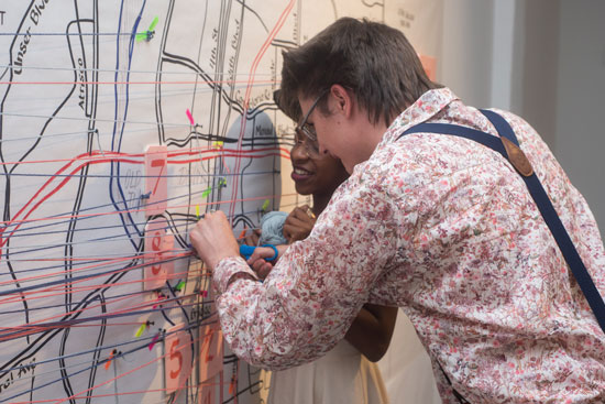 Where are your roots? The public was invited to map their, their parents’, or their grandparents’ migration journies on a hand-drawn map of the world.