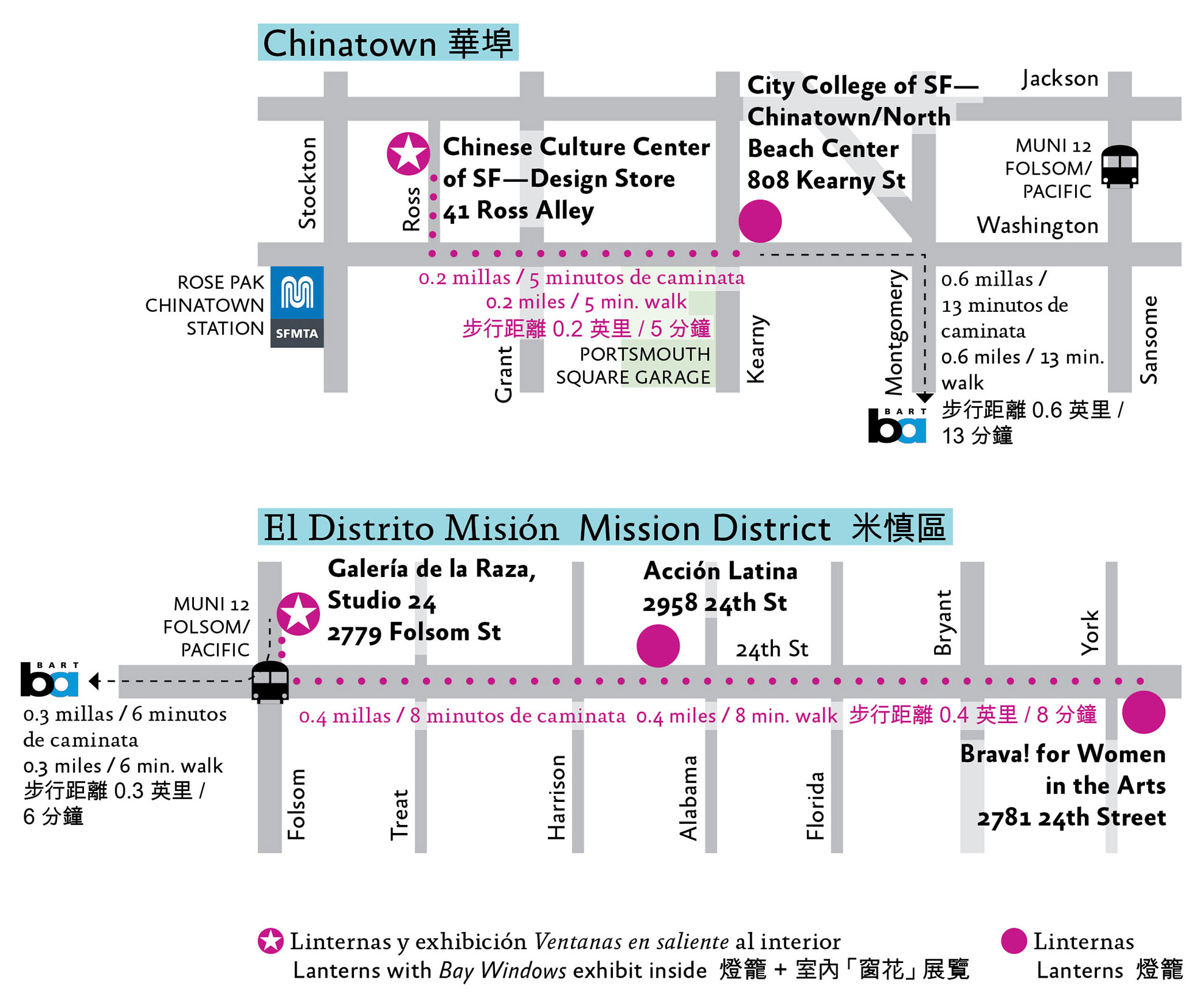 Encuentra 15 linternas de diseño único en Chinatown y el Distrito Misión. Convive con sus creadoras, realiza la trivia y colecta las estampillas para tener la oportunidad de ganar premios.